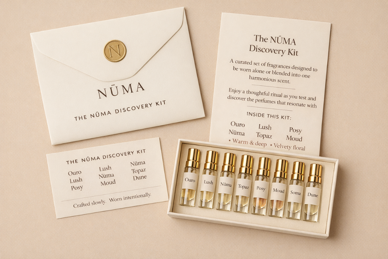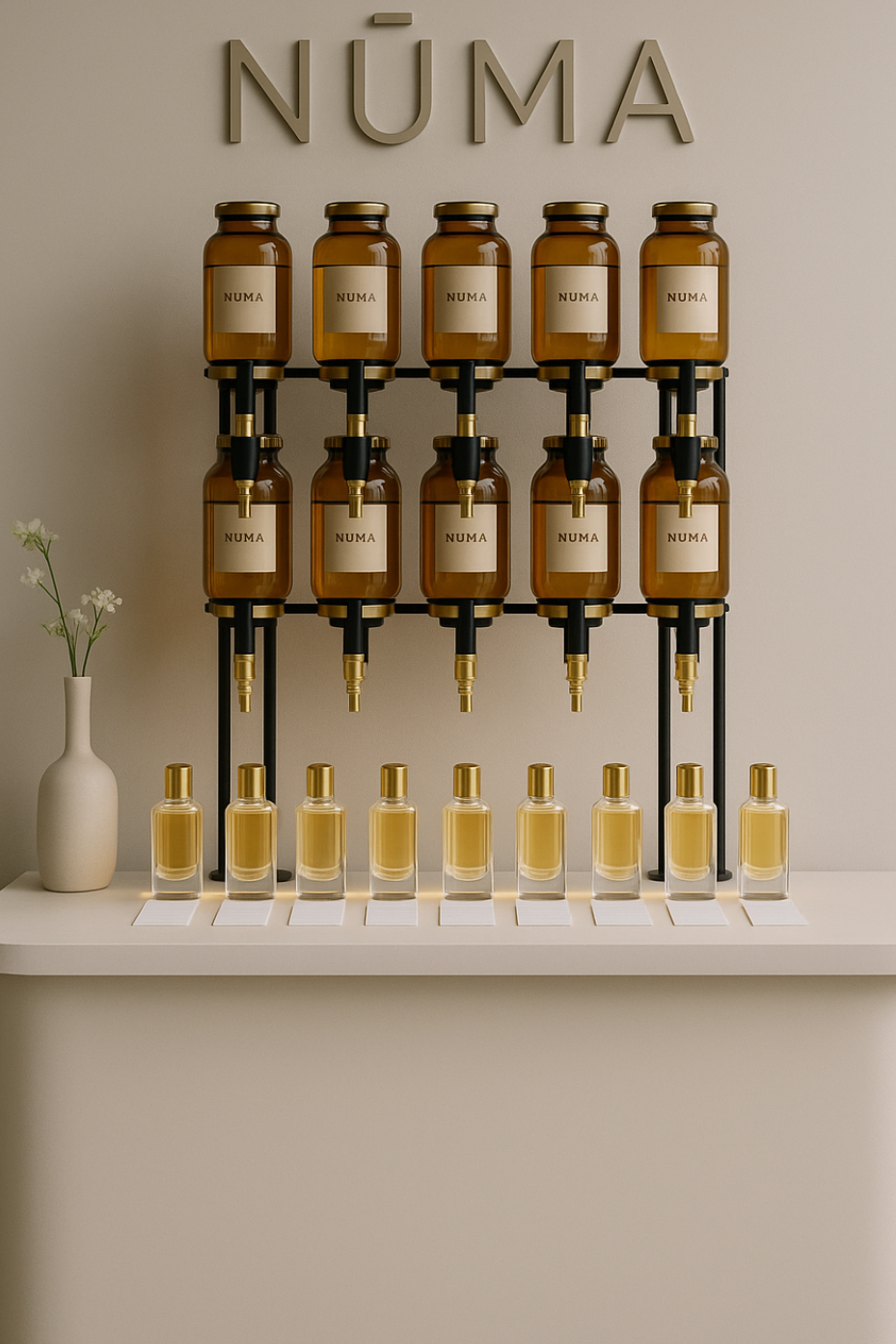 The NŪMA Perfume Bar transforms fragrance into a tactile, intentional ritual. Guests discover our curated base scents, guided through warm notes, soft light, and a gentle blending process. Each perfume is chosen with care and becomes a bottled memory they take home.